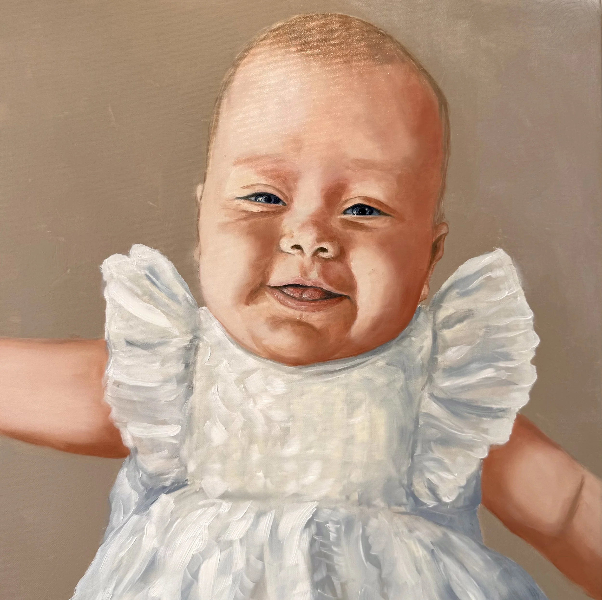 Jeg maler portrætter i samme ånd som mine øvrige værker, intuitivt, sanseligt og med fokus på stemning og bestræbelse efter perfektion. Et portræt for mig handler ikke kun om at gengive et ansigt, men om at indfange menneskets væsen: blikket, energien og det usagte.
